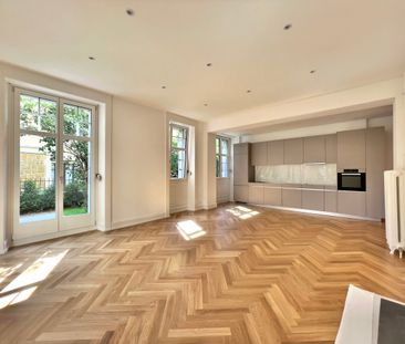 This stylishly renovated attic apartment boasts high ceil...
