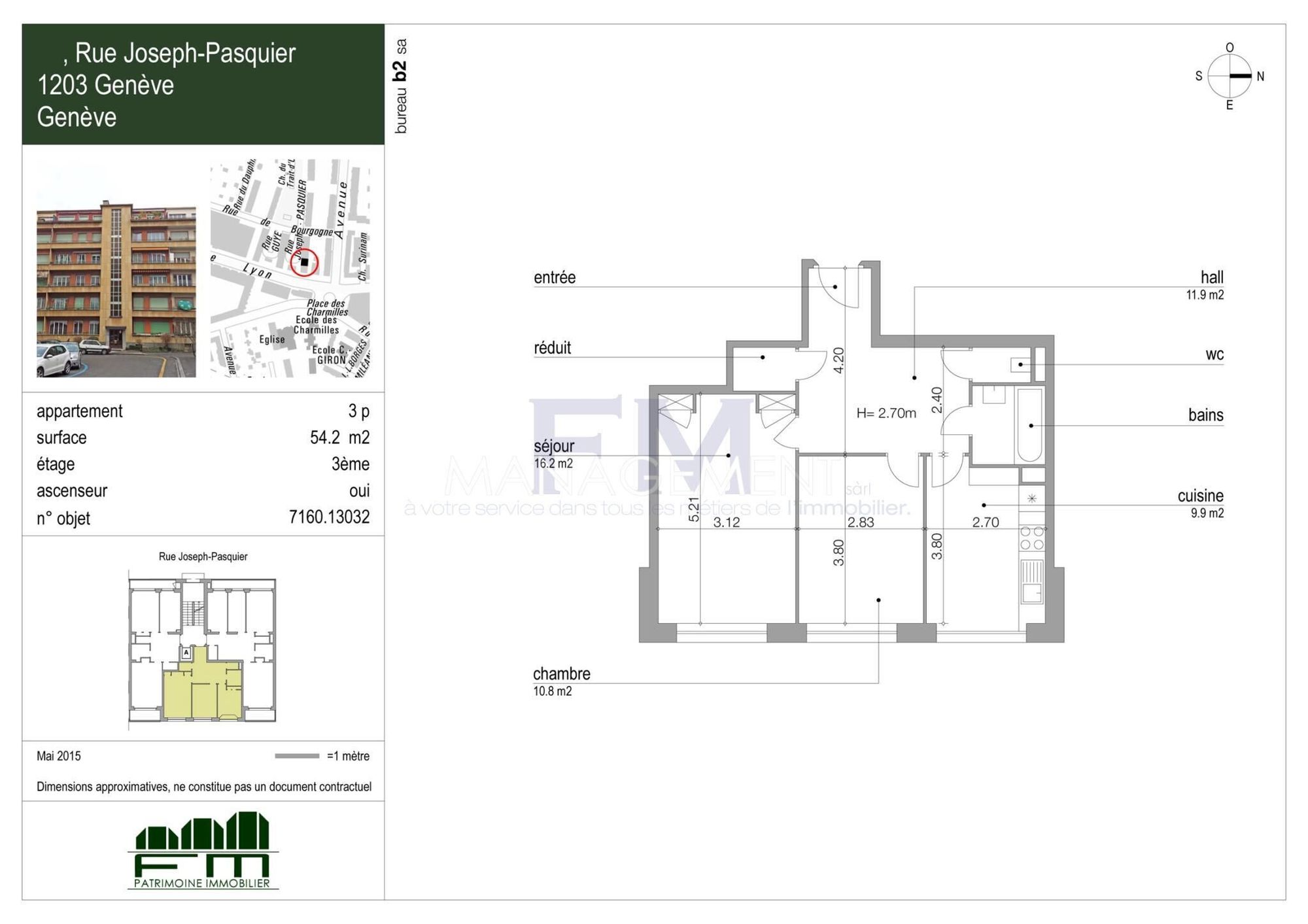 Bienvenue dans votre nouvelle retraite urbaine à Rue Joseph Pasquier, 1203 Genève ! Cet appartement moderne de 3 chambres offre un espace de vie élégant et confortable. Le concept ouvert est parfait pour recevoir et la cuisine élégante est équipée d'appareils haut de gamme. Grâce à son emplacement privilégié, vous serez à quelques pas des meilleurs restaurants, boutiques et lieux de divertissement de la ville. À un prix abordable de CHF 2 370, cet appartement est une fantastique opportunité de profiter de la vie en ville à son meilleur. Ne manquez pas cette occasion – planifiez une visite dès aujourd'hui !