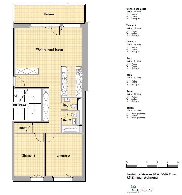 Bienvenue dans votre nouvelle retraite urbaine à Pestalozzistrasse 69a, 3600 Thun ! Cet appartement moderne de 3 chambres offre un espace de vie élégant et confortable. Le concept ouvert est parfait pour recevoir et la cuisine élégante est équipée d'appareils haut de gamme. Grâce à son emplacement privilégié, vous serez à quelques pas des meilleurs restaurants, boutiques et lieux de divertissement de la ville. À un prix abordable de CHF 1 650, cet appartement est une fantastique opportunité de profiter de la vie en ville à son meilleur. Ne manquez pas cette occasion – planifiez une visite dès aujourd'hui !