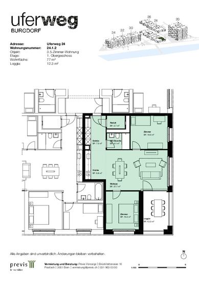 Willkommen in Ihrem neuen urbanen Rückzugsort in Uferweg 24, 3400 Burgdorf! Diese moderne 3 Schlafzimmer-Wohnung bietet einen stilvollen und gemütlichen Lebensraum. Die offene Raumaufteilung eignet sich perfekt für Gäste, und die elegante Küche ist mit erstklassigen Geräten ausgestattet. Dank der erstklassigen Lage sind Sie nur wenige Schritte von den besten Restaurants, Geschäften und Unterhaltungsmöglichkeiten der Stadt entfernt. Mit einem erschwinglichen Preis von CHF 1.670 ist diese Wohnung eine fantastische Gelegenheit, das Leben in der Stadt von seiner besten Seite zu genießen. Verpassen Sie nicht die Gelegenheit - vereinbaren Sie noch heute einen Besichtigungstermin!